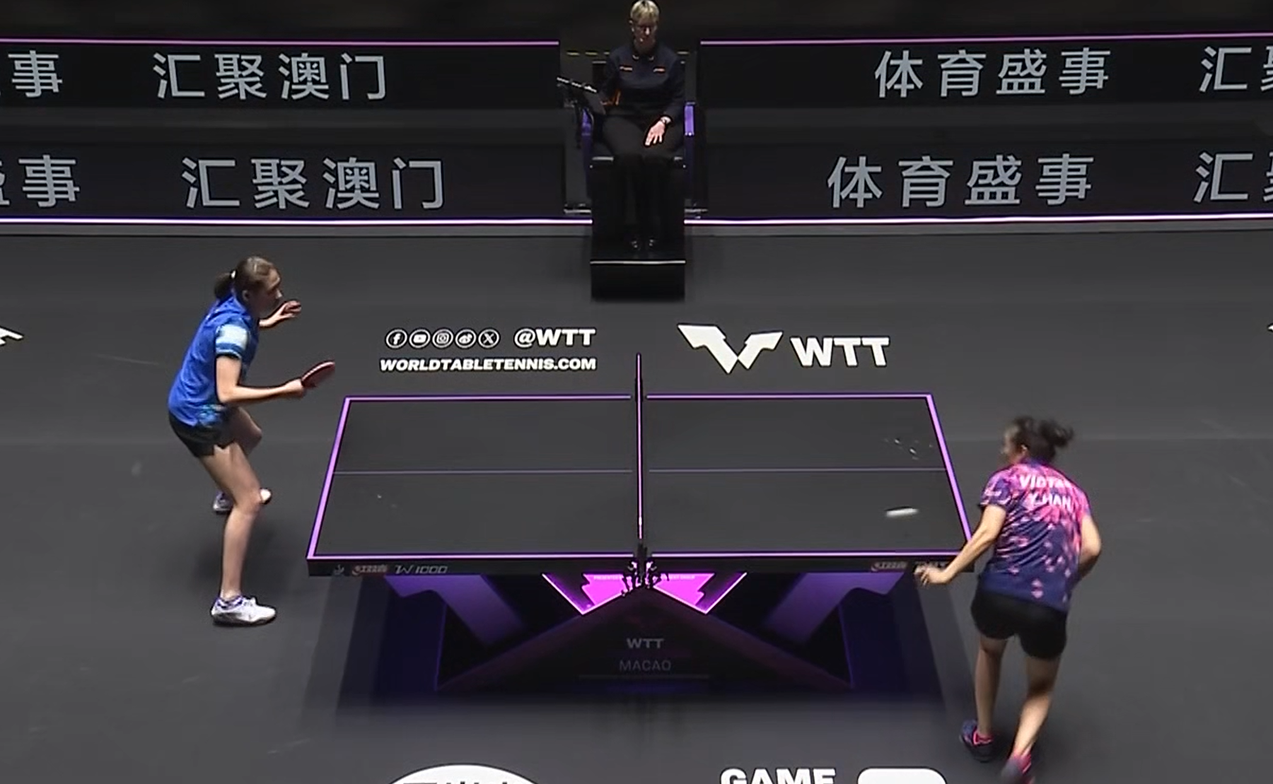 WTT澳门冠军赛女单1/8决赛:陈熠 vs 韩莹