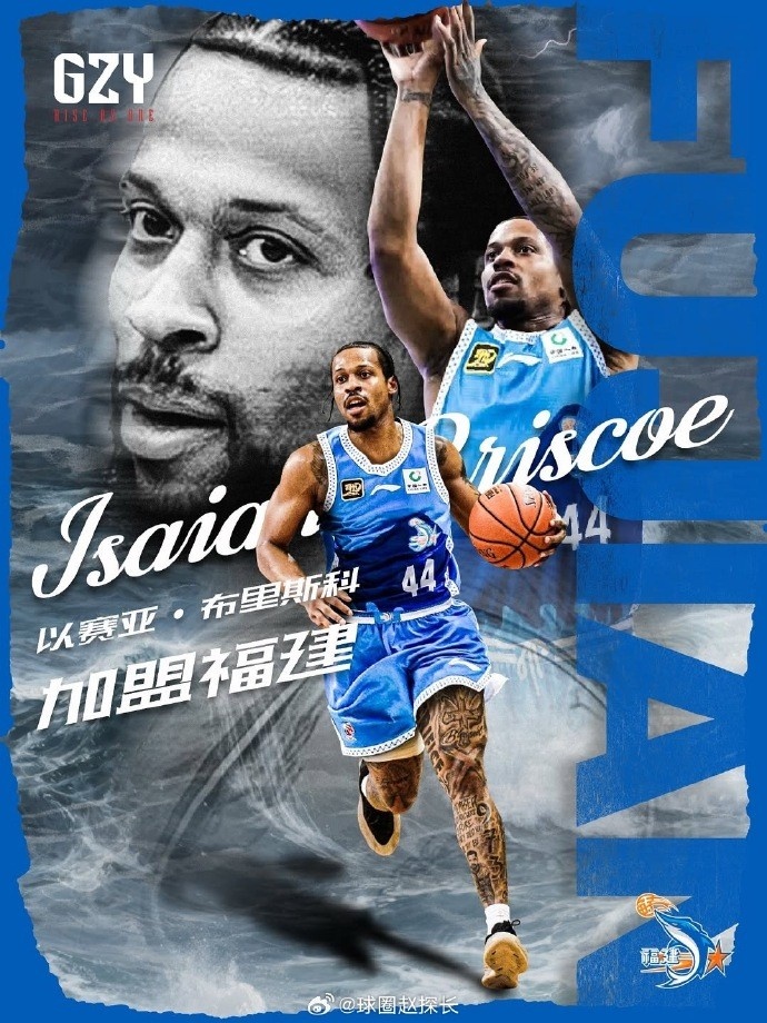 9月6日讯 经纪公司官宣,以赛亚-布里斯科加盟福建男篮。